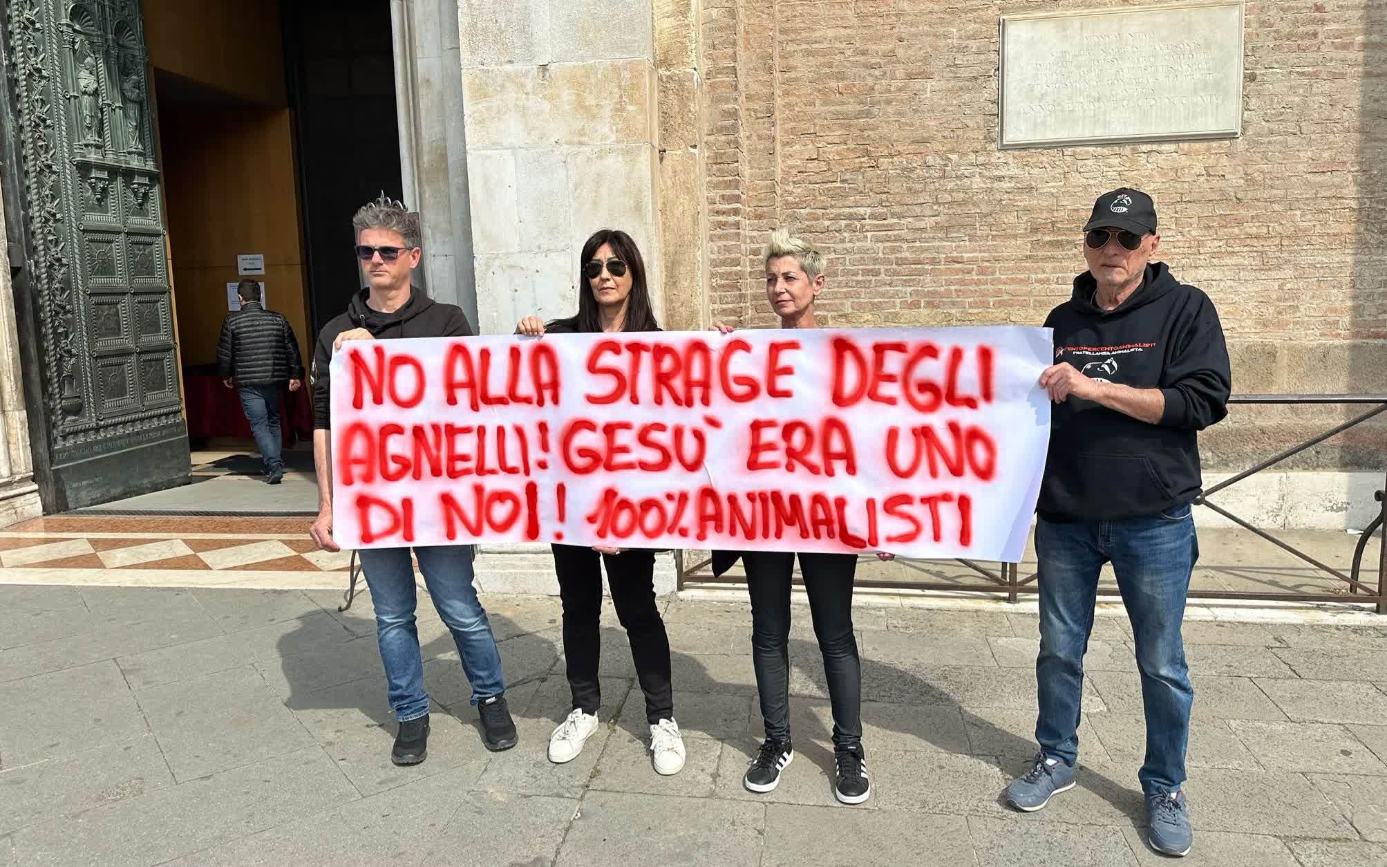 100% Animalisti fuori da Sant'Antonio per dire no al pranzo pasquale a base di agnelli