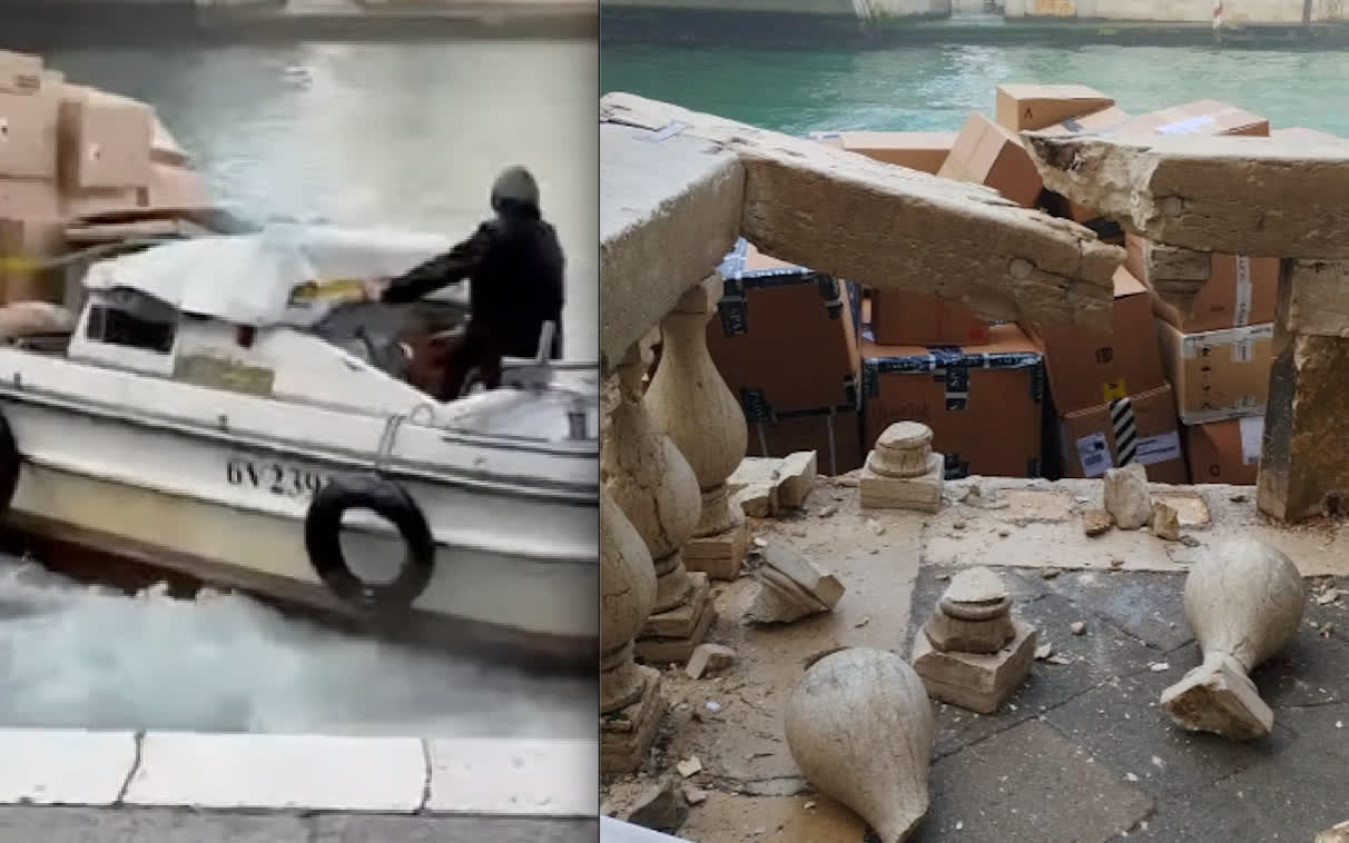 VIDEO | Venezia, Ruba una barca e si schianta, distruggendo la balaustra al ponte del Rialto