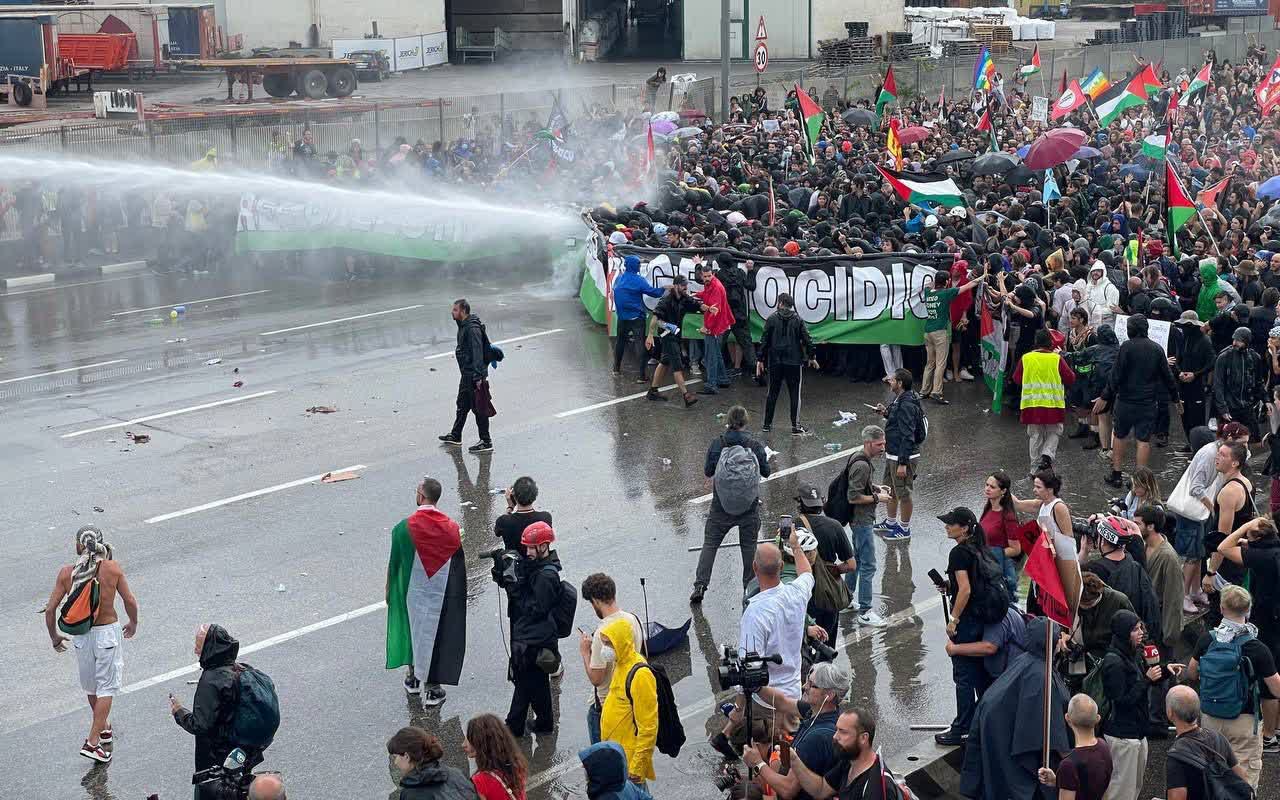 VIDEO | Blocco del porto a Marghera, idranti sui pro Pal. E la manifestazione non si ferma