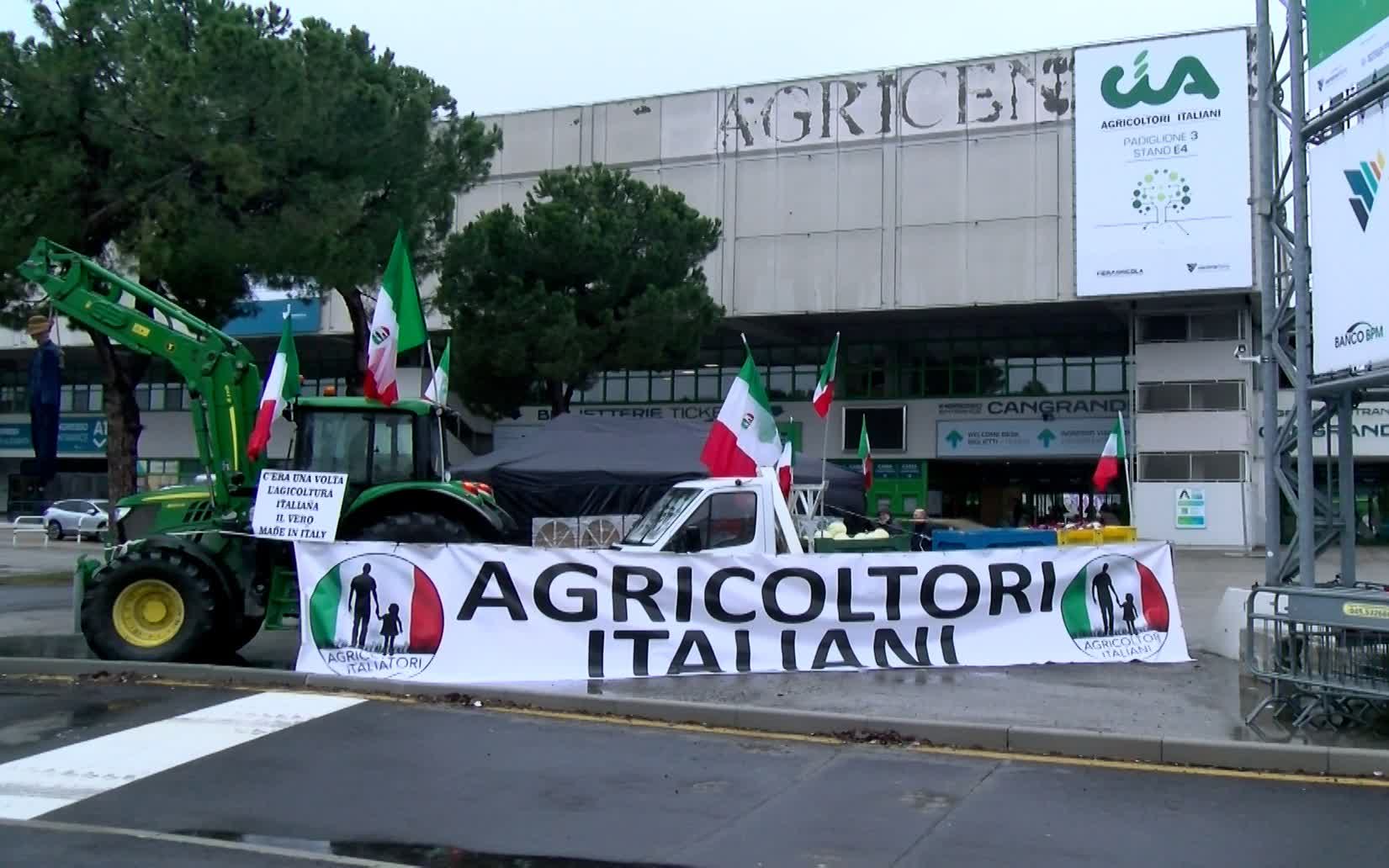 VIDEO | Agricoltori Italiani in protesta all'esterno della fiera