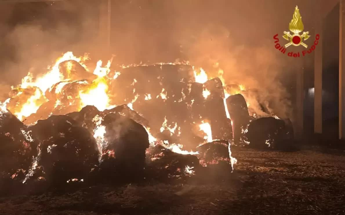 VIDEO | Fiamme in un deposito di fieno ad Albaredo d’Adige